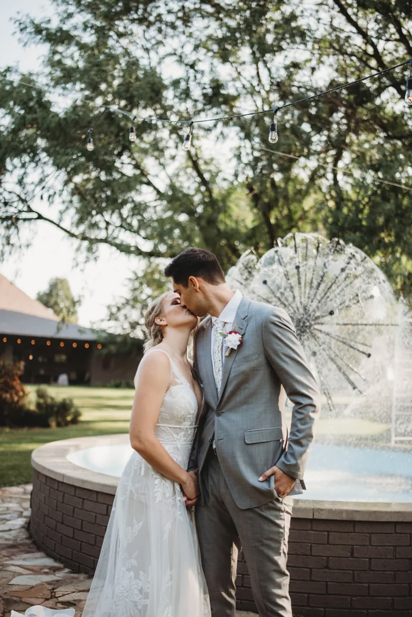 A storybook setting with a flowing fountain, graceful pergola, and lush trees and flowers—where romance and nature meet for unforgettable vows.